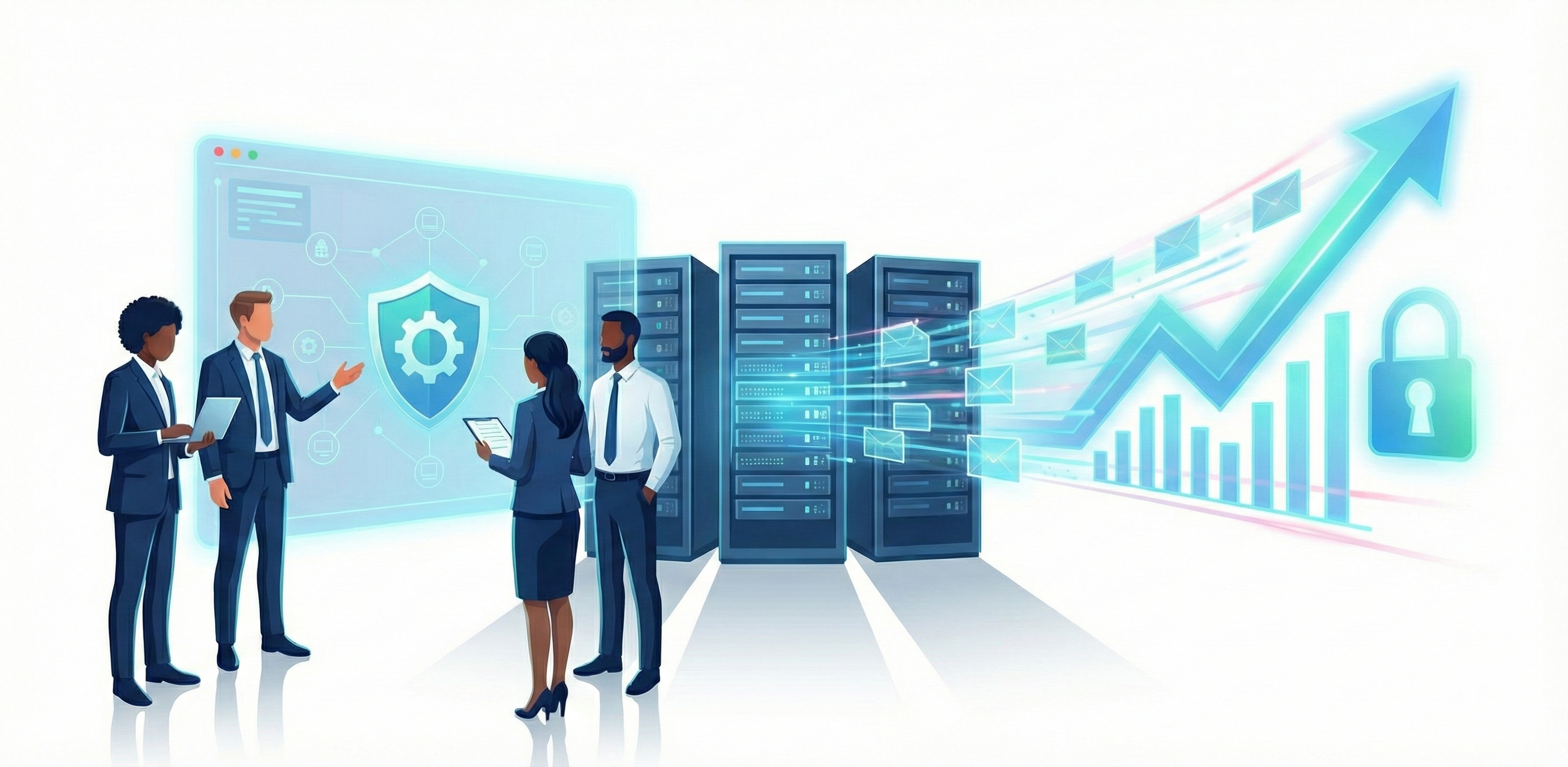 Comunicação clara, sem jargões técnicos para confundir, e visibilidade total sobre a saúde da sua operação. Assumimos a responsabilidade pela sua infraestrutura de ponta a ponta. Seu uptime (disponibilidade) é a nossa principal métrica.
